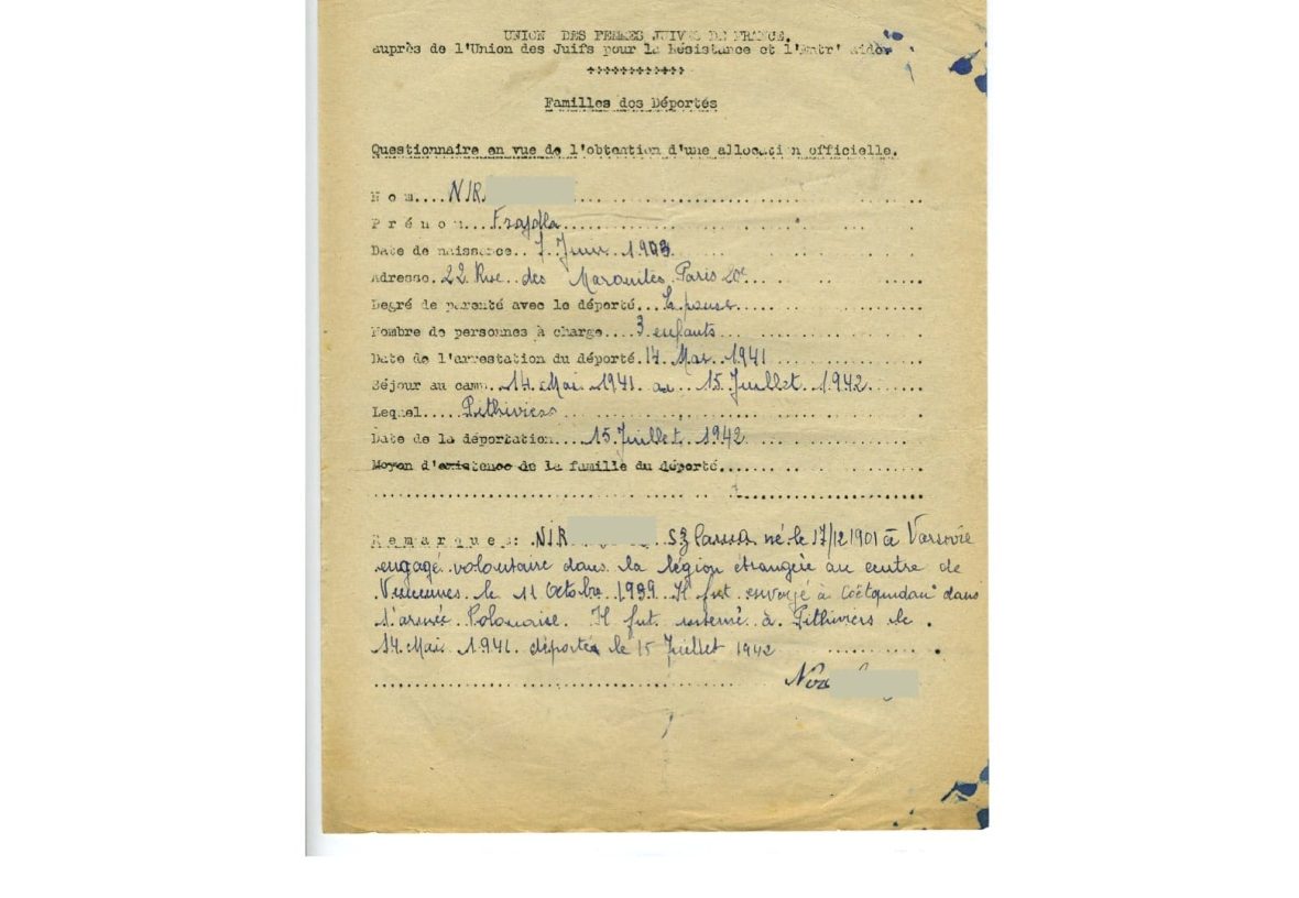 Nir.Frajolla, Juif polonais, engagé volontaire dans la Légion étrangère, détenu à Pithiviers en 1941-42.